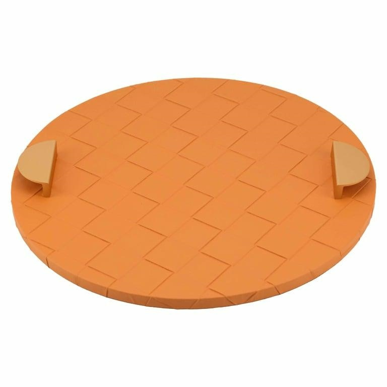 - RICHMOND taca dekoracyjna MAVEY pomarańczowa. Wyjątkowy dodatek, który ożywi każde wnętrze. Okrągły kształt i geometryczny, pleciony wzór nadają nowoczesny i stylowy charakter. Wykonana z wysokiej jakości skóry PU, płyty MDF oraz wykończona detalami ze st