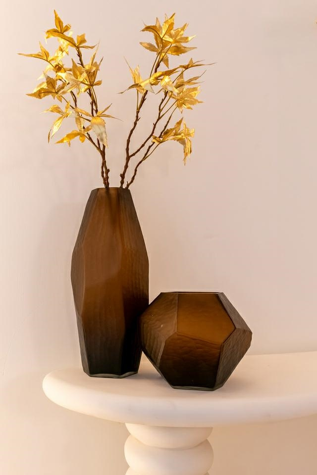 - RICHMOND waza ALEXIS. Elegancka i stonowana ozdoba, wykonana z ciemnego brązowo-złotego szkła o wyjątkowym wykończeniu. Geometryczny kształt nada Twojemu wnętrzu nowoczesny charakter, sprawiając, że stanie się również idealnym elementem dekoracyjnym. Alex