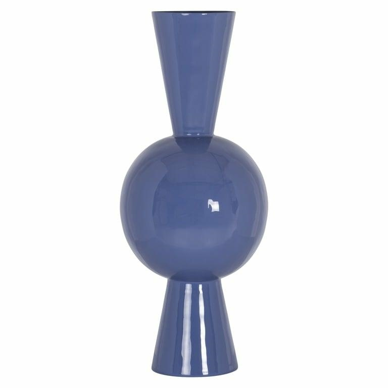 RICHMOND wazon ARLISS niebieski. Nowoczesna i przyciągająca uwagę dekoracja wykonana z metalu pokrytego emalią. Charakteryzuje się eleganckim, kulistym korpusem i zwężającymi się ku końcom cylindrami, które nadają mu futurystyczny wygląd. Nasycony odcień niebieskiego doskonale komponuje się z błyszczącym wykończeniem, tworząc efektowny akcent w każdym wnętrzu. Wazon jest idealny do ekspozycji samodzielnej lub jako część większej aranżacji dekoracyjnej. Należy pamiętać, że nie został pokryty powłoką hydrofobową i nie nadaje się do kontaktu z wodą. To świetna propozycja dla miłośników designu, ceniących formę i kolor. Wymiary: wys. 74 cm / szer. 30 cm / gł. 30 cm Waga brutto: 6,8 kg.
