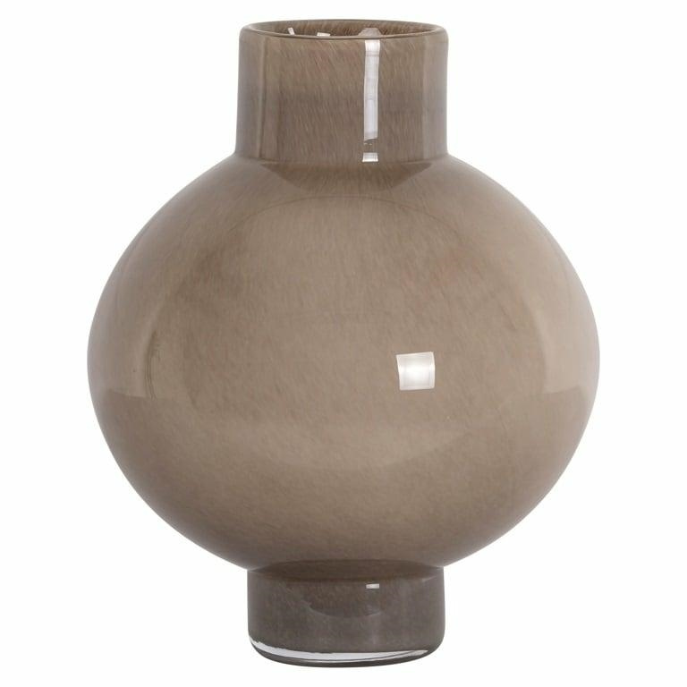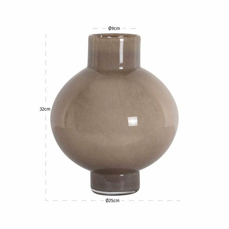 RICHMOND wazon CELINA S brązowy. Elegancka dekoracja wykonana z barwionego szkła w odcieniu taupe/brązowym. Opływowy, kulisty kształt i minimalistyczna forma sprawiają, że doskonale komponuje się zarówno z klasycznymi, jak i nowoczesnymi wnętrzami. Dostępny jest w dwóch rozmiarach, co pozwala na tworzenie spójnych aranżacji. Subtelny połysk i przejrzystość szkła dodają lekkości i szlachetnego charakteru. Wazon jest wodoodporny, dzięki czemu idealnie sprawdzi się do ekspozycji zarówno suchych kompozycji, jak i świeżych kwiatów. To wyjątkowy akcent, który wprowadzi do wnętrza odrobinę nowoczesnej elegancji. Wymiary: wys. 32 cm / szer. 25 cm / gł. 25 cm Waga brutto: 4,5 kg.