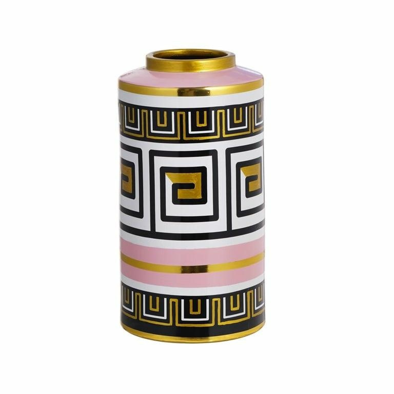 - RICHMOND wazon LEORA S. Elegancki wazon, który ozdobi każde wnętrze swoim wyjątkowym stylem. Antyczny styl połączono z nowoczesnym designem. Pastelowe, biało-różowe wykończenie ze złotymi detalami wykonano z kamienia i gliny. Dostępna także większa wersja