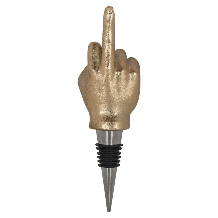 - RICHMOND zatyczka do butelki CHARONA złota. Ta oryginalna zatyczka do butelki wykonana z żywicy i stali nierdzewnej wyróżnia się nowoczesnym, zabawnym designem – przedstawia dłoń ukazującą środkowy palec. Nietypowy kształt na pewno przyciągnie uwagę gości