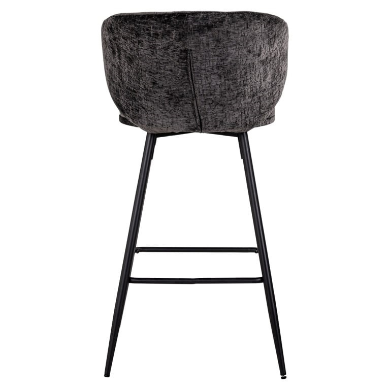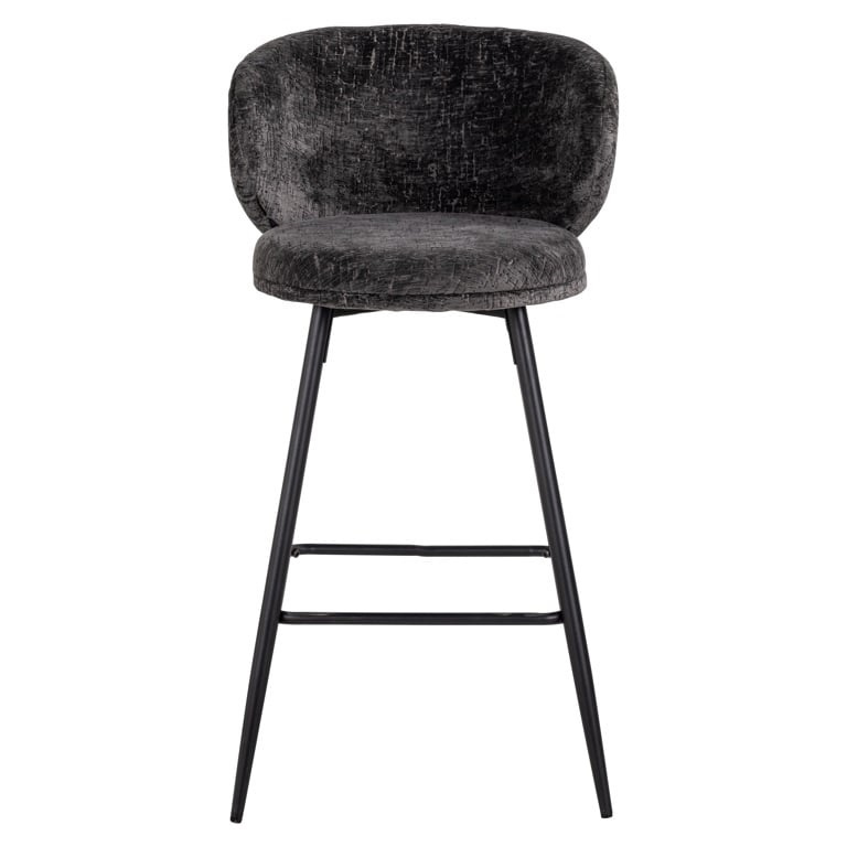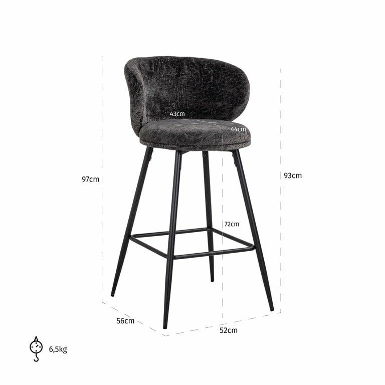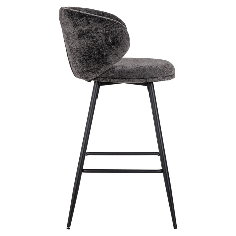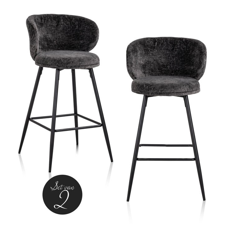 - RICHMOND zestaw 2 krzeseł barowych MIMI. Mimi charakteryzuje się szykownym oraz ponadczasowym wyglądem. Kształtne oparcie oraz siedzisko wykonano z pięknej, czarnej tkaniny o nazwie Island graphite 66. Jest to elegancka tkanina, która odpowiada wszystkim
