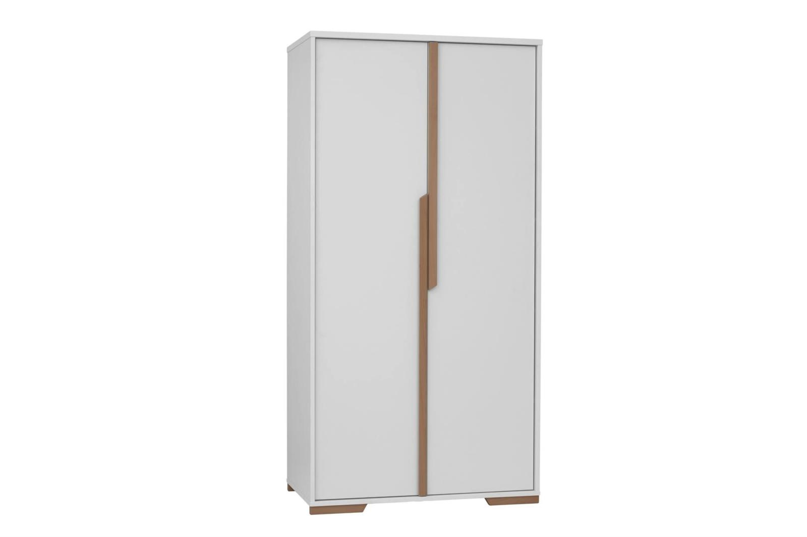 Pojemna szafa dwudrzwiowa z kolekcji Snap z systemem cichego zamykania wysokiej jakości. Wewnątrz przegroda pionowa, oraz różne możliwości aranżacji wnętrza szafy - np. 4 półki z jednej strony oraz 2 półki i drążek na ubrania z drugiej strony - w standardzie 6 półek i 1 drążek na ubrania - możliwość dokupienia dodatkowych półek (maksymalnie 2 sztuki).