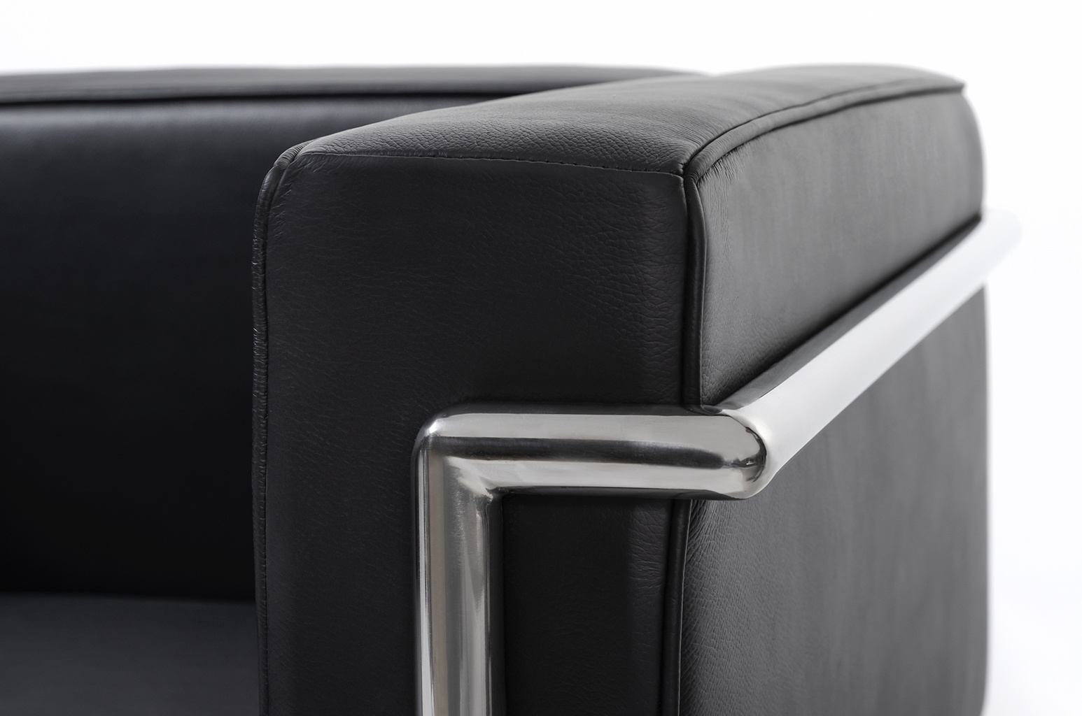 - Sofa trzyosobowa SOFT LC2 , elegancja w klasycznym wydaniu. Naturalna włoska skóra w czarnym kolorze, połączona z polerowaną stalą. Dzięki szerokości 180 cm, na sofie wygodnie mogą rozsiąść i wypocząć trzy osoby. Siedzisko jest na wysokości 42 cm, ułatwia