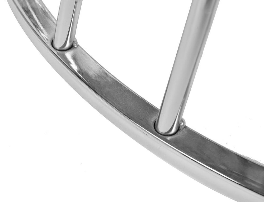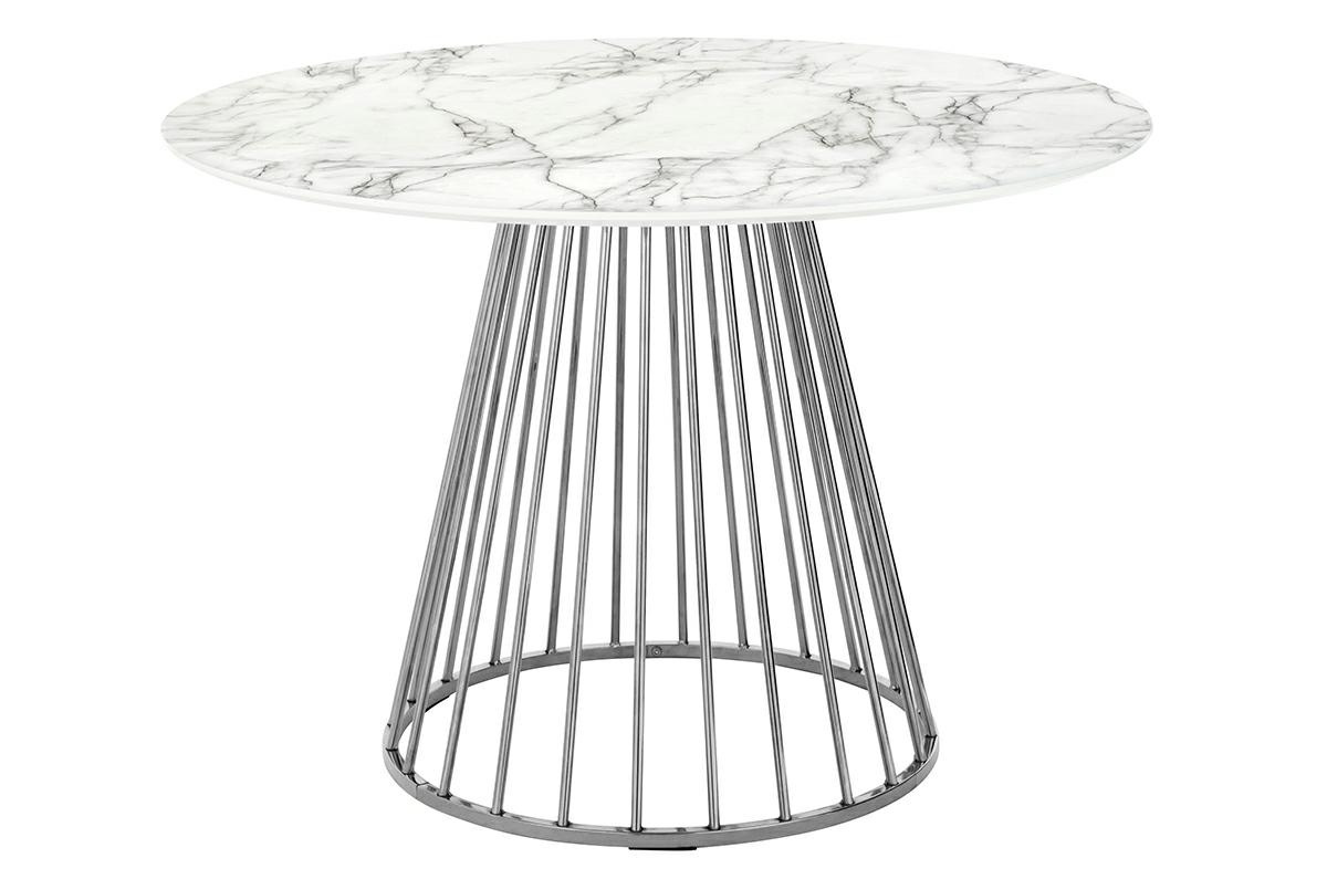 - Stół GLAM MARBLE. Okrągły blat o grubości 1,8 mm, wykonany został z MDF-u w okleinie imitującej marmur. Staranie wykonane okleinie z błyszczącego PCV, powoduje że blat wygląda jak prawdziwy marmur. Mocna podstawa zrobiona jest z metalowych, chromowanych p