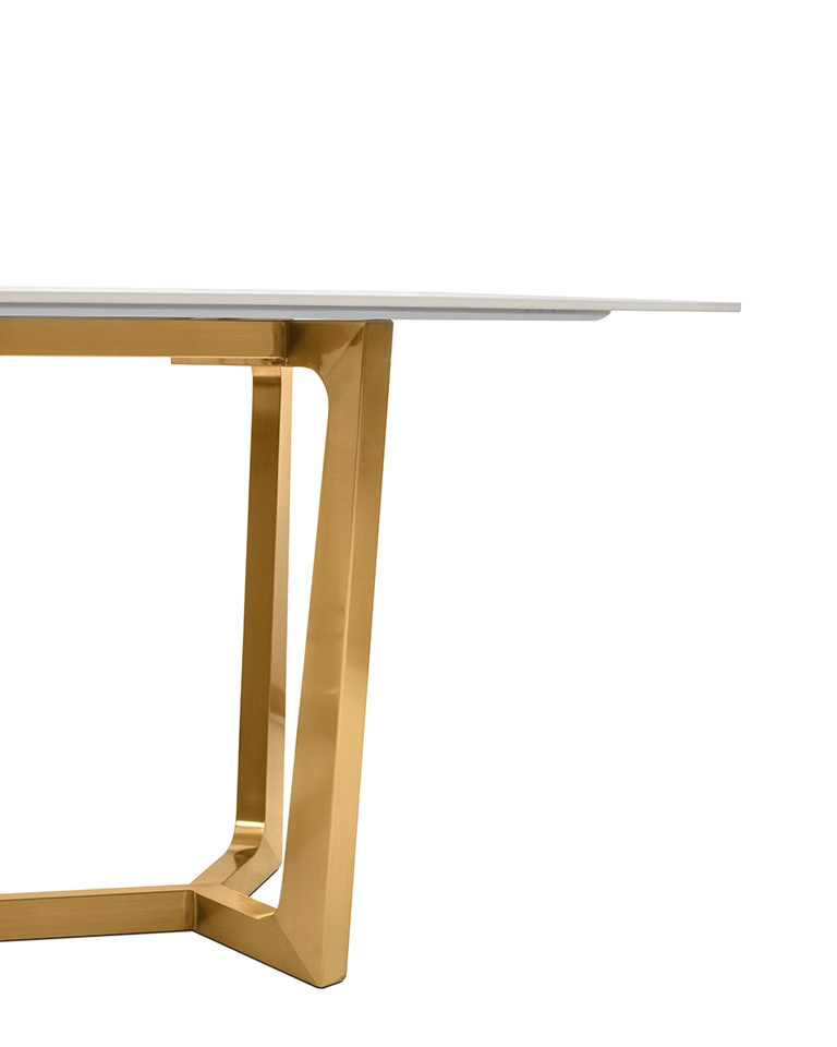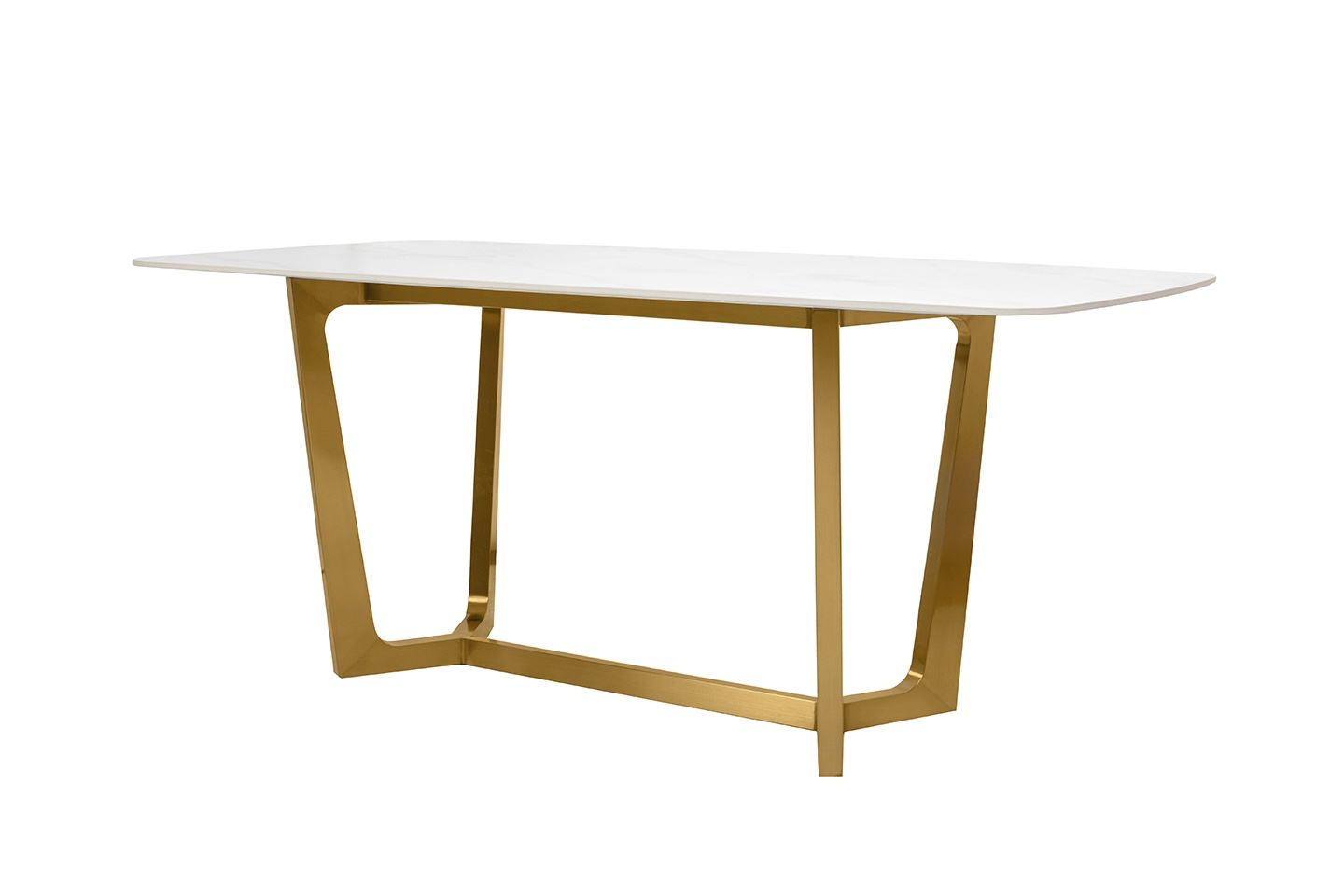 - Stół ODEON 180 biały. Kwintesencja nowoczesnego designu połączonego z luksusem. Biały ceramiczny blat imitujący marmur emanuje subtelną elegancją i harmonijnie współgra z imponującą podstawą wykonaną ze stali nierdzewnej w złotym odcieniu. Odeon to stół j