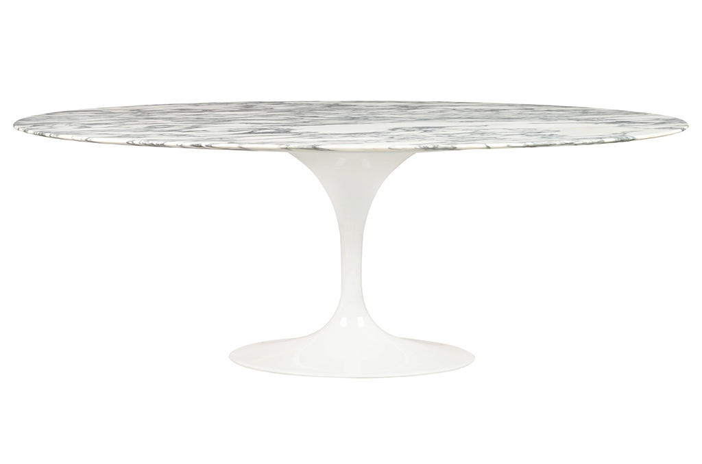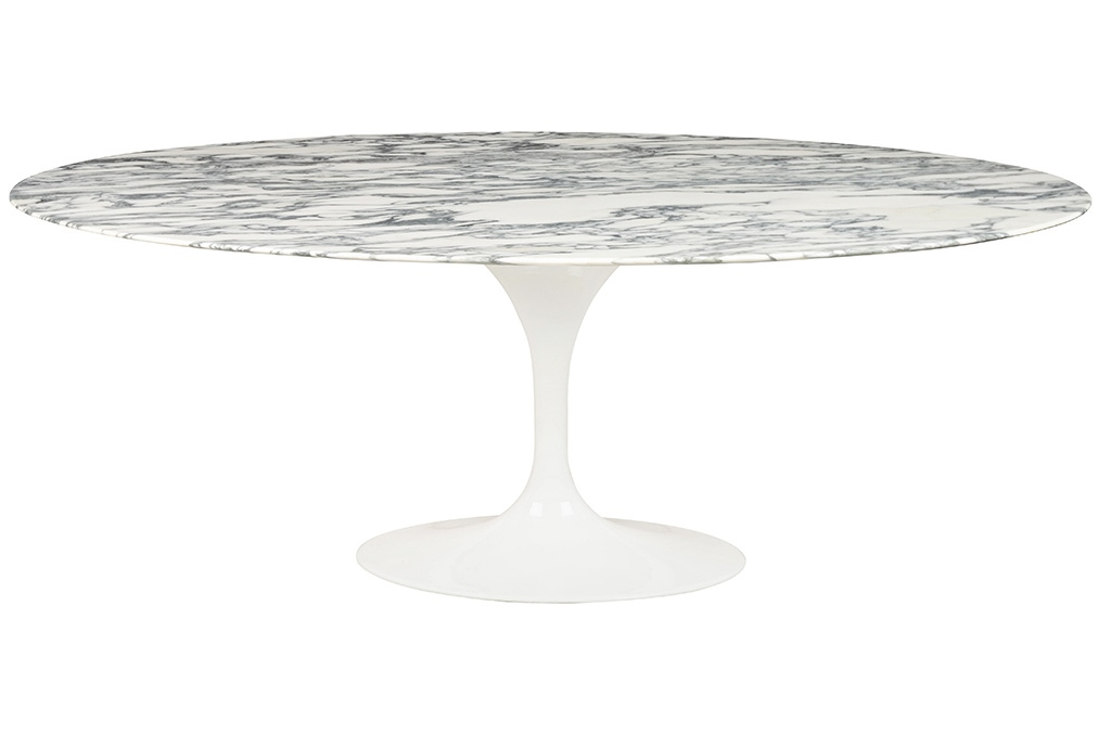 - Stół TULIP ELLIPSE MARBLE ARABESCATO 200 biały - marmur, metal. Kwintesencja elegancji i nowoczesnego stylu. Owalny blat z włoskiego marmuru Arabescato w jasnym odcieniu zachwyca naturalnym rysunkiem kamienia i eleganckim wykończeniem. Stabilna podstawa w