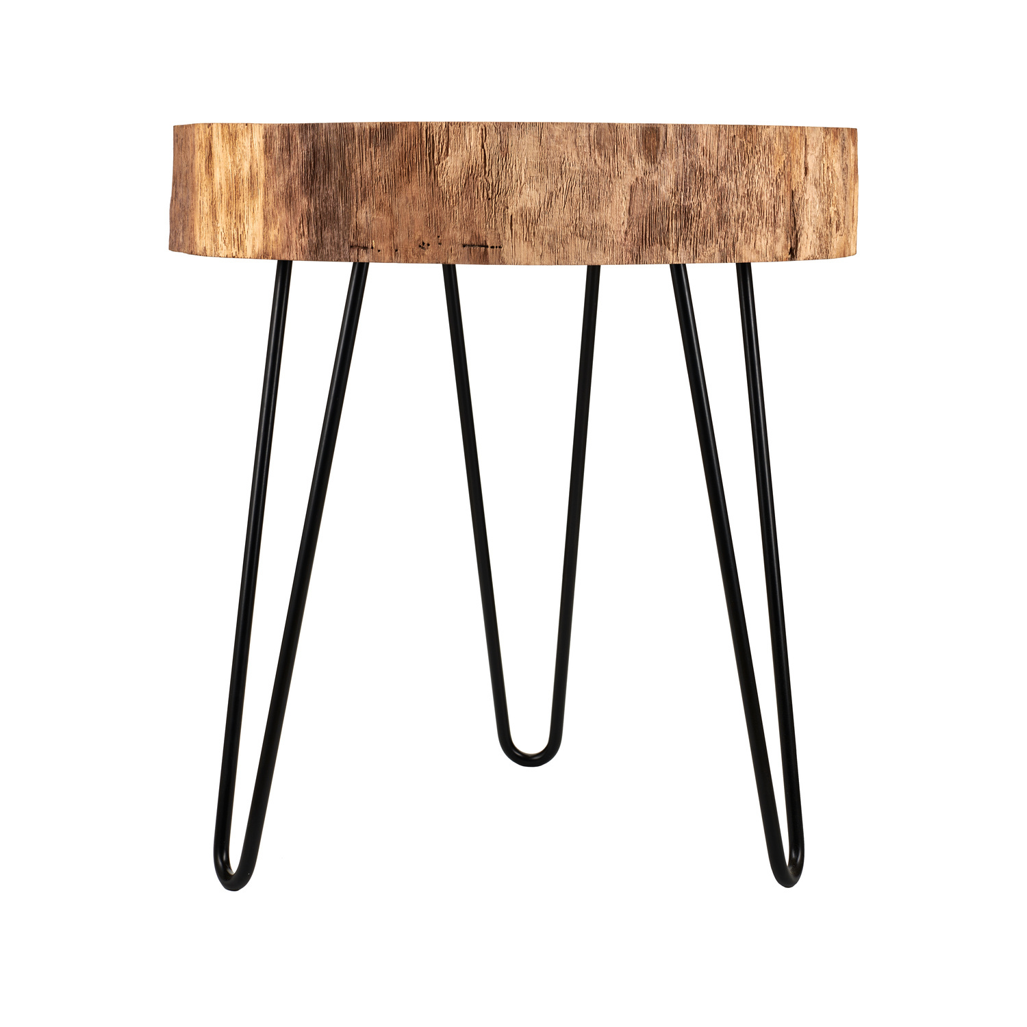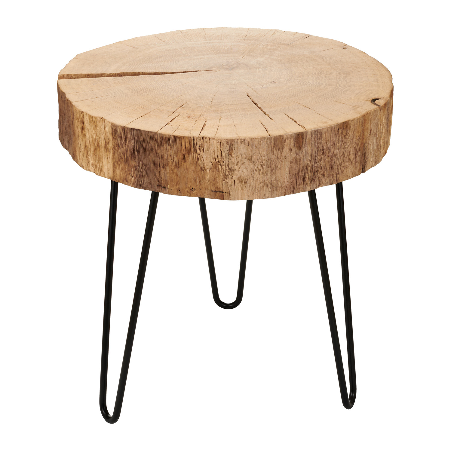 Okrągły blat pokrywają usłojenia, co dodaje stolikowi uroku