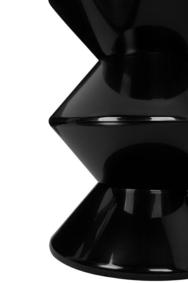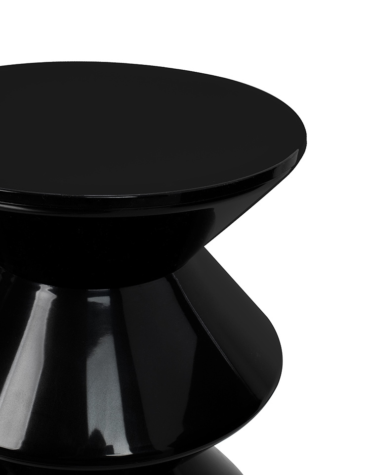 - Stolik TURN czarny. Został wykonany w całości z polipropylenu w czarnym kolorze. Stolik oprócz funkcjonalności jest również świetnym elementem dekoracyjnym. Geometryczne kształty nadadzą aranżacji niepowtarzalnego stylu. Wymiary: wys. 45 cm / śr. 35 cm Wa