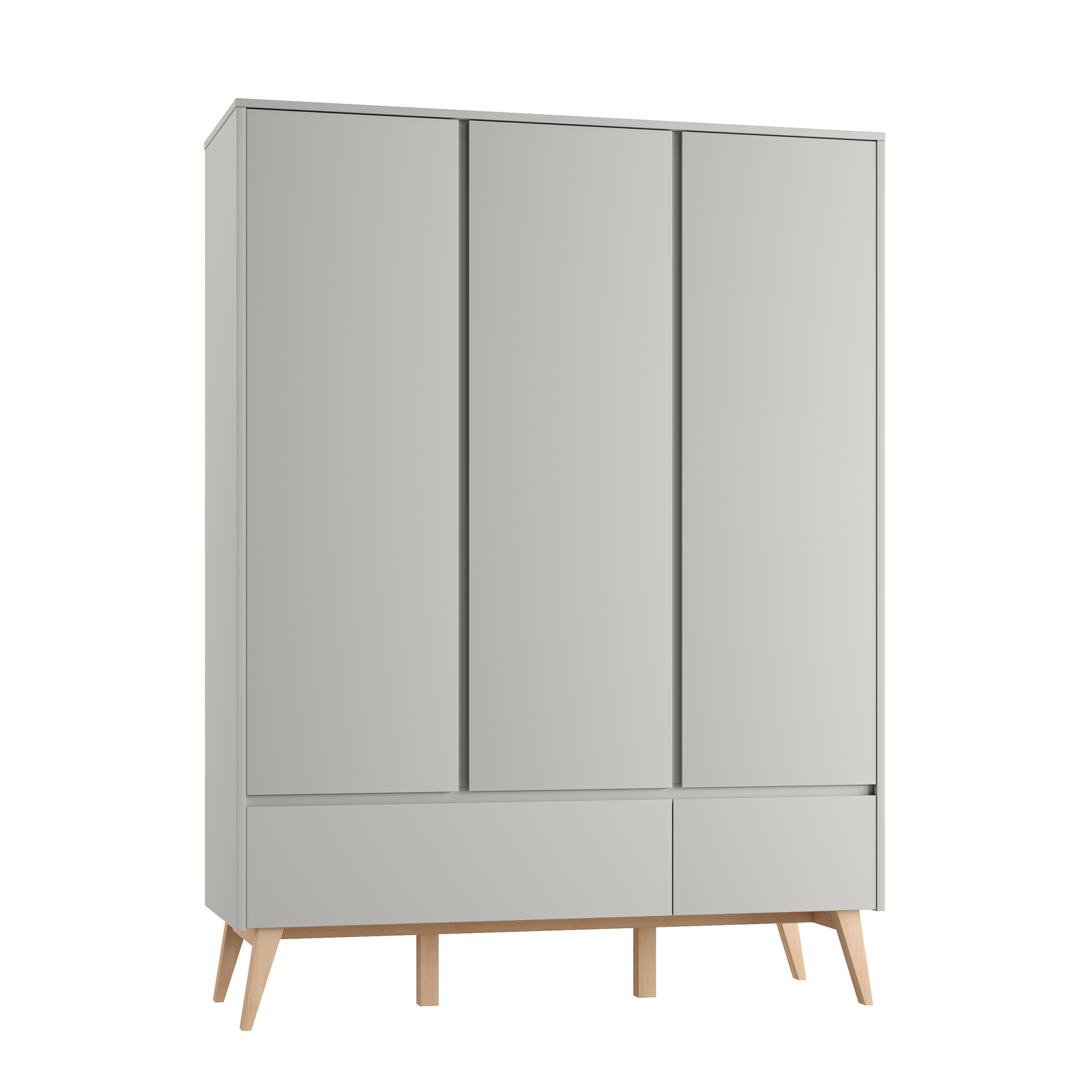 Szafa wykonana jest z malowanej płyty MDF ( fronty),litego drewna bukowego lakierowanego (nóżki) oraz płyty laminowanej oklejanej bezspoinowo. Szafa została pomalowana bezpiecznymi, atestowanymi farbami, zgodnymi z normą EN 71-2. Występuje w kolorze białym i szarym. Posiada drewniane nóżki z litego drewna bukowego. Pasuje zarówno do pokoiku chłopca, jak i dziewczynki. Produkt do samodzielnego montażu.