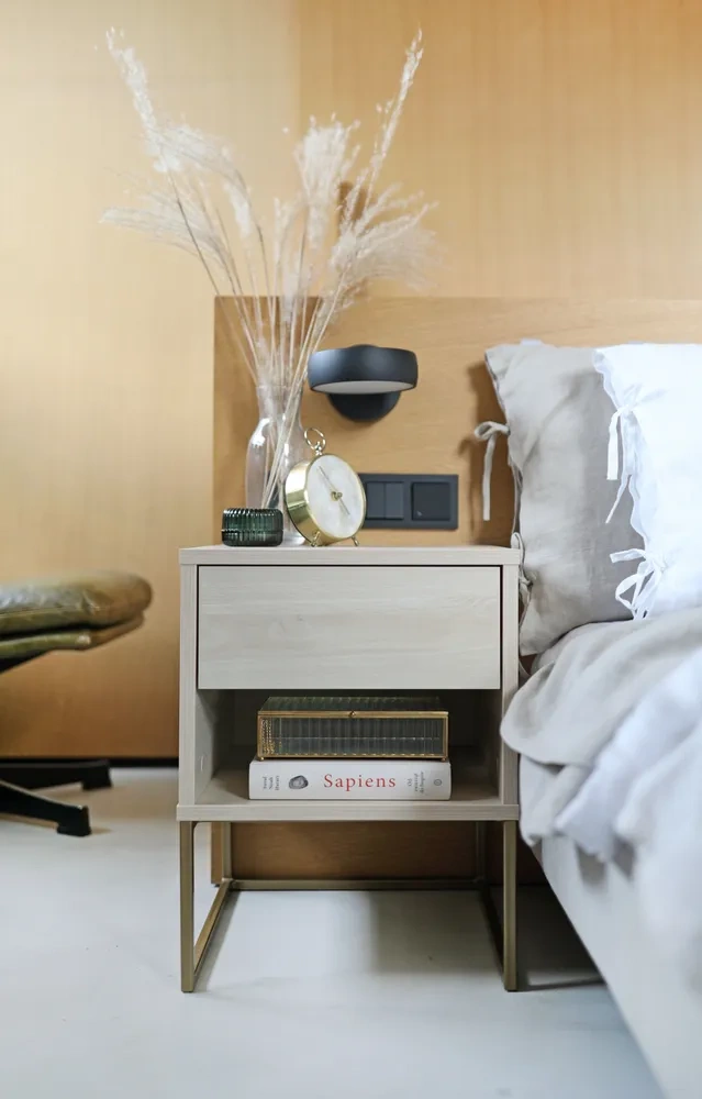Płytka szafa MINI 2 z manufaktury mebli Minko posiada pojemne półki i szuflady, co pozwala na uporządkowanie garderoby i innych rzeczy w łatwy i wygodny sposób. Jak wszystkie meble z naszej oferty, jest dostępna w szerokiej palecie materiałów i kolorów, aby pasować do stylu i dekoracji Twoje sypialni lub przedpokoju.