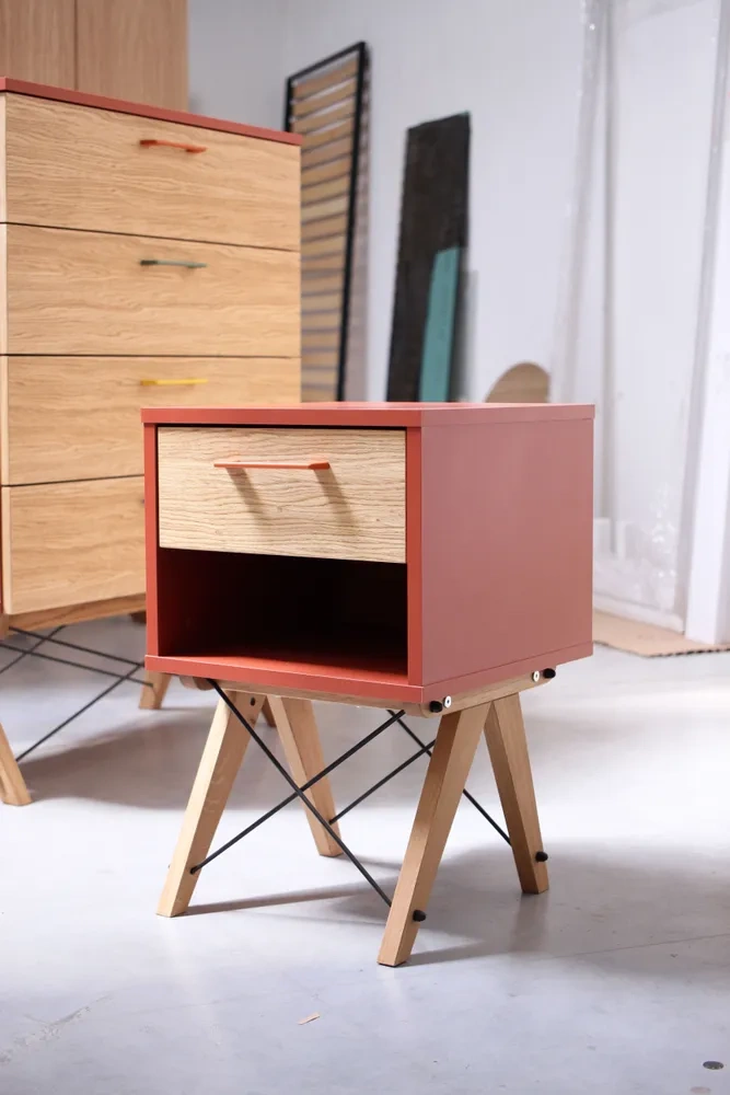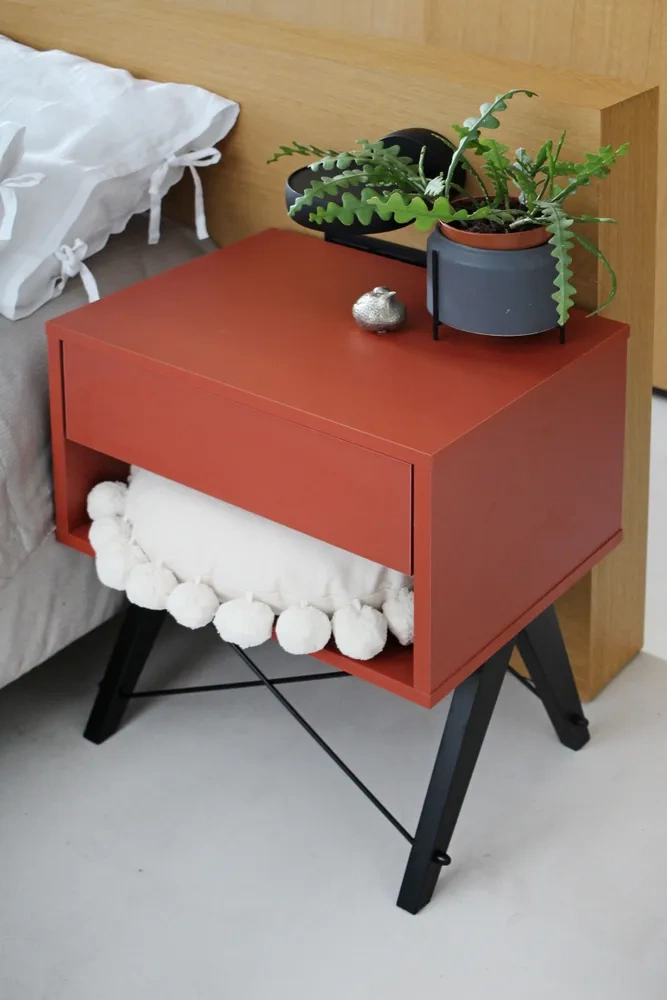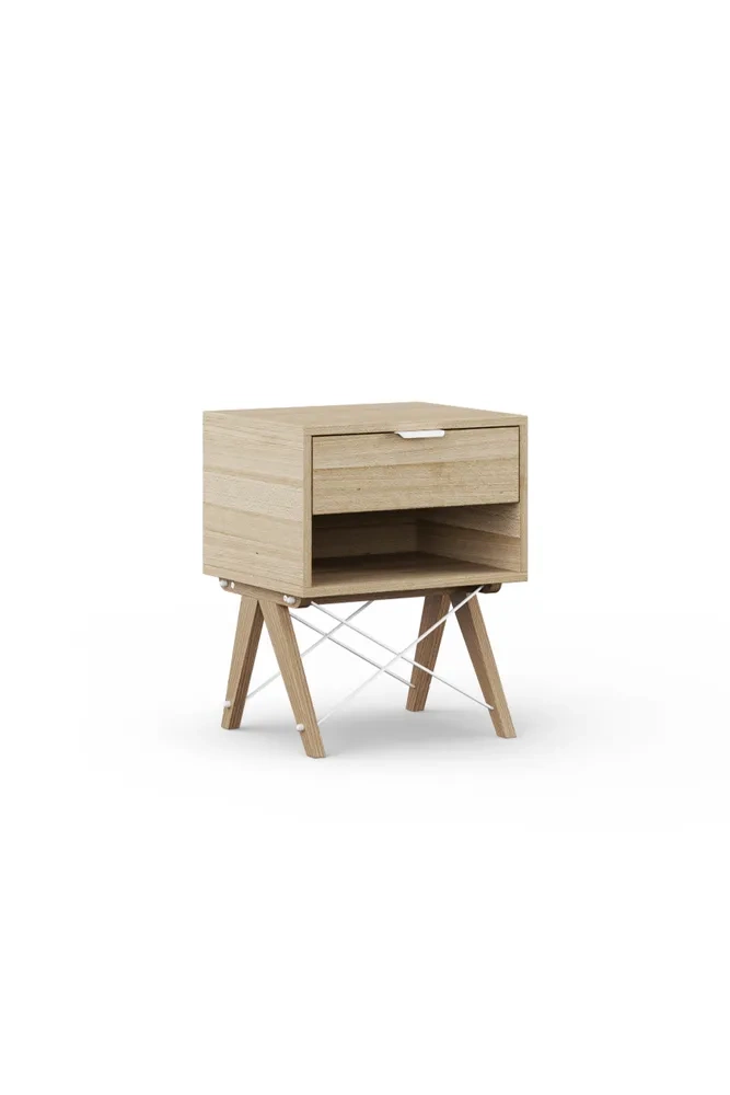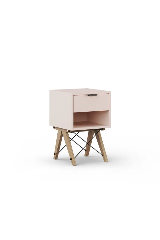 To pełen uroku mebel w skandynawskim stylu dedykowany nie tylko do norweskich wnętrz. Świetnie odnajdzie się on także w nowoczesnych klimatach. Szafka nocna w stylu skandynawskim posiada pojemną szufladę, która pomieści wszystkie Twoje codzienne drobiazgi. Drewniane nóżki szafki nocnej dodają jej stylowego sznytu. Dodatkową zaletą jest fakt, że możesz dowolnie spersonalizować swoją szafkę nocną, wybierając kolor korpusu oraz stelaża.