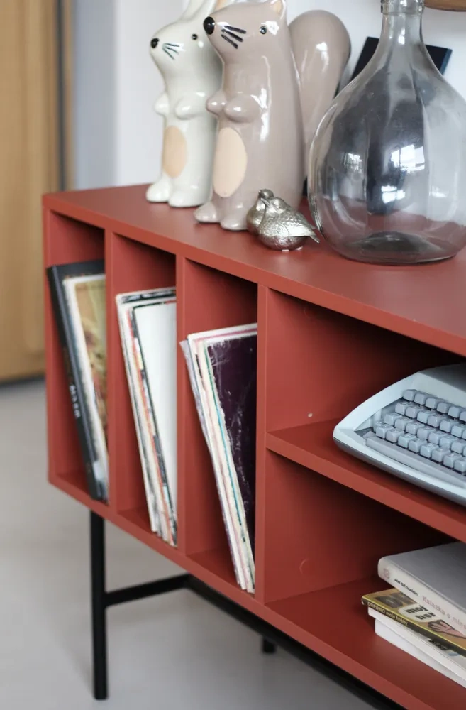 Ręcznie wykonywana szafka RTV to sprytny mebel, którego ogromną zaletą są frezowane fronty, dzięki którym cały sprzęt audio wraz z wszystkimi kablami pozostaje niewidoczny. Oprócz frezowanych frontów do wyboru oferujemy również klapy lub szuflady oraz segment na winyle. Metalowe nogi szafki RTV w formie stelaża dostępne są w kolorach: czarny, biały i złoty.