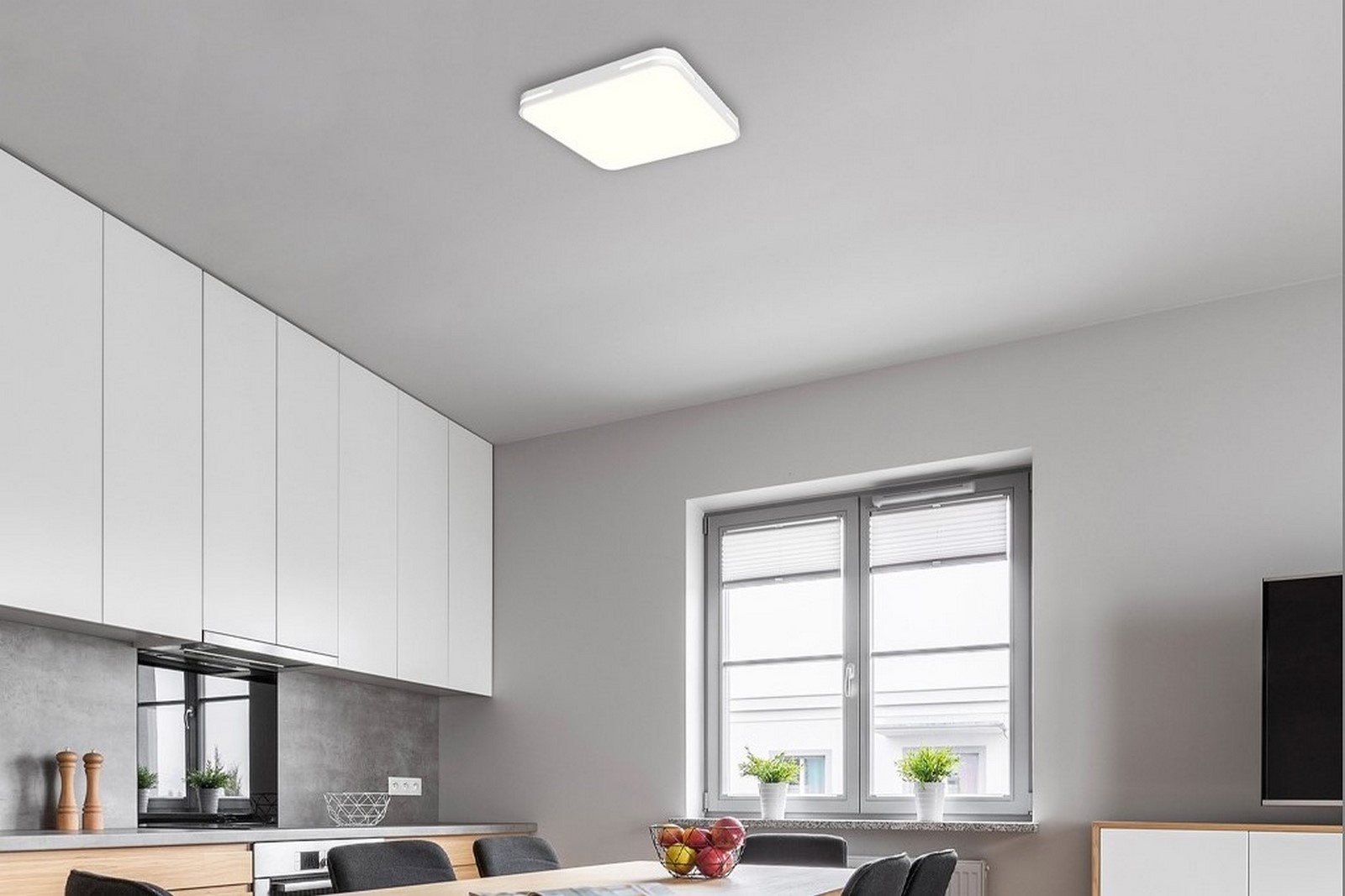 - Dzięki białej kwadratowej plafonierze TETRA możesz cieszyć się ciepłym lub chłodnym białym światłem. Bezprzewodowa obsługa za pomocą dostępnego osobno inteligentnego przełącznika 9706201361 lub aplikacji Lutec Connect. Aktywuj więcej inteligentnych funkc
