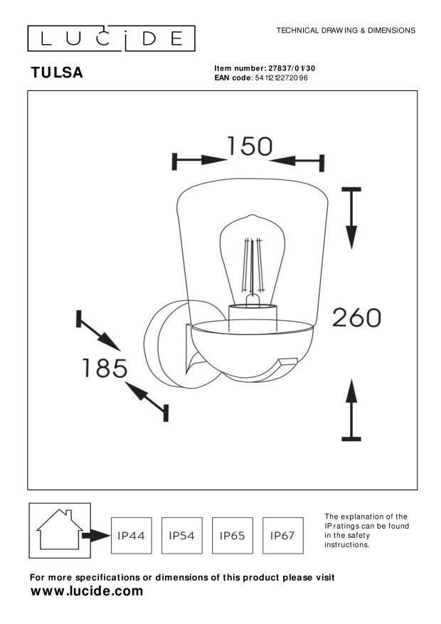 - Lucide TULSA - Kinkiet zewnętrzny - 1xE27 - IP44 - Czarny