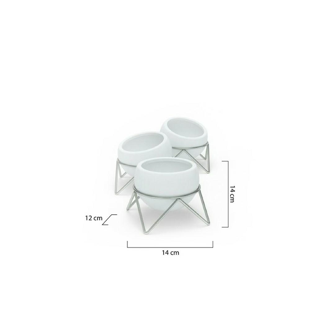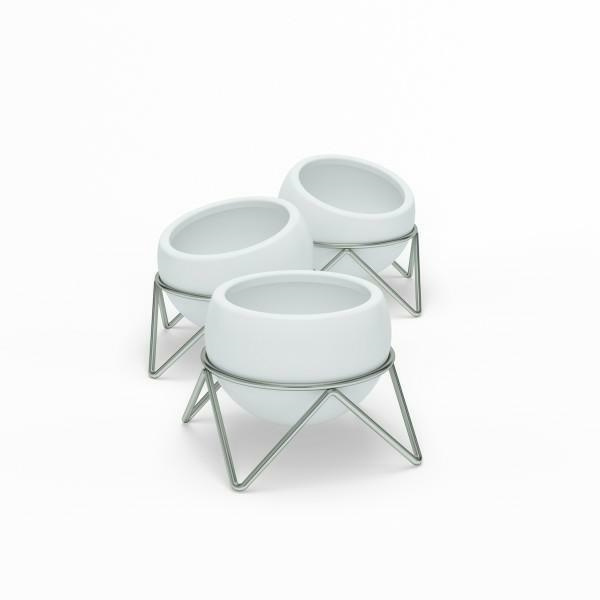 - Zestaw trzech doniczek Umbra Potsy w kolorze białym, to aranżacja w stylu glamur. Doniczki w białym kolorze mają owalny kształt i można ustawiać je pod dowolnym kątem. Geometryczny akcent w postaci cienkiego, srebrnego metalowego stelaża nadaje całej form