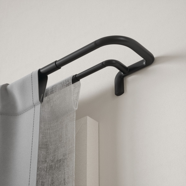 - UMBRA karnisz TWILIGHT DOUBLE czarny mat. Nowoczesne i funkcjonalne rozwiązanie do każdego wnętrza. Zakrzywiona konstrukcja umożliwia przyleganie zasłon do ściany, skutecznie blokując światło i zwiększając prywatność. Podwójny drążek pozwala na zawieszeni
