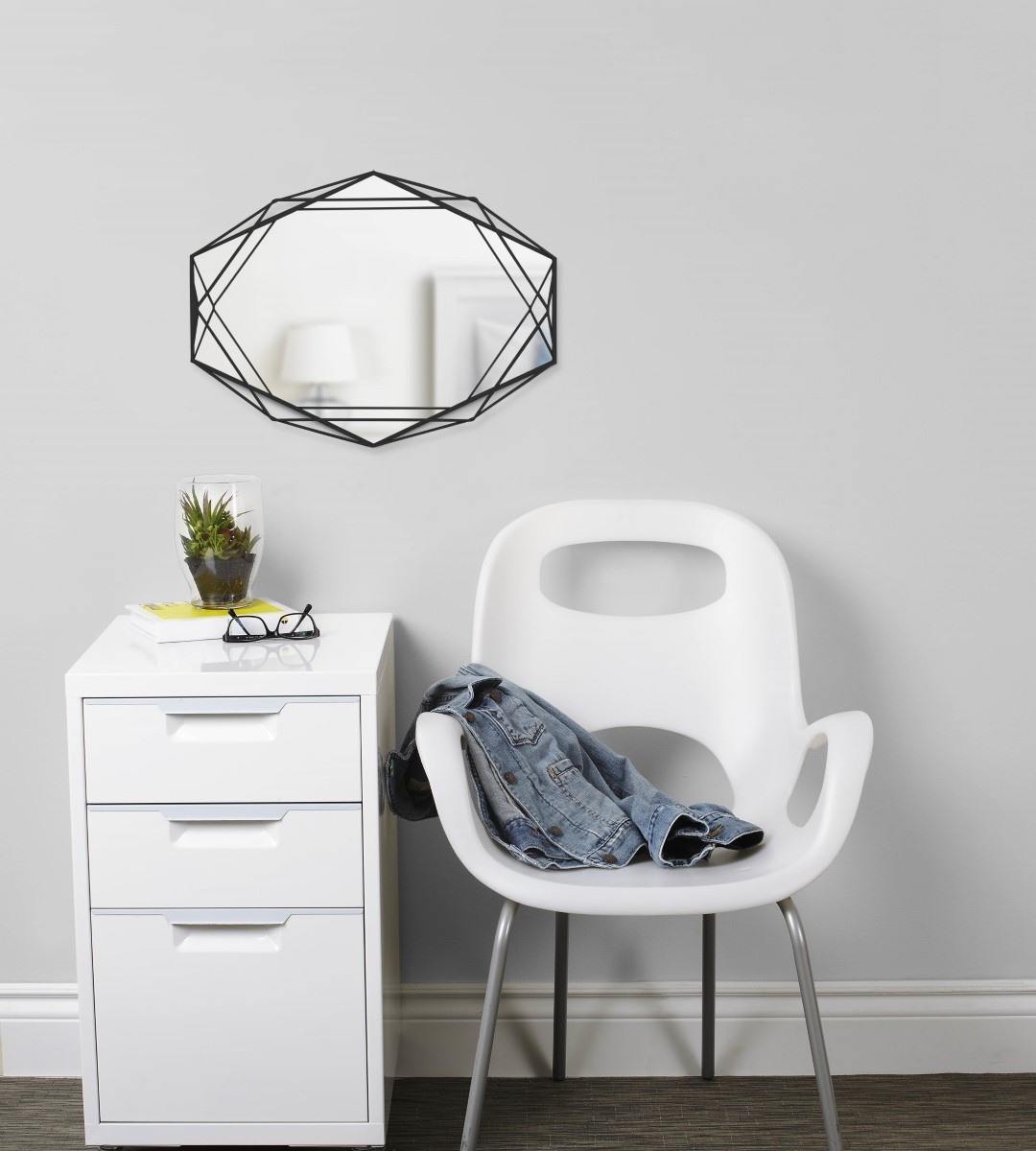 Pomimo niebanalnego designu, lustro Prisma jest bardzo praktyczne - na jego ramie złożonej z metalowych prętów można powiesić różne akcesoria.