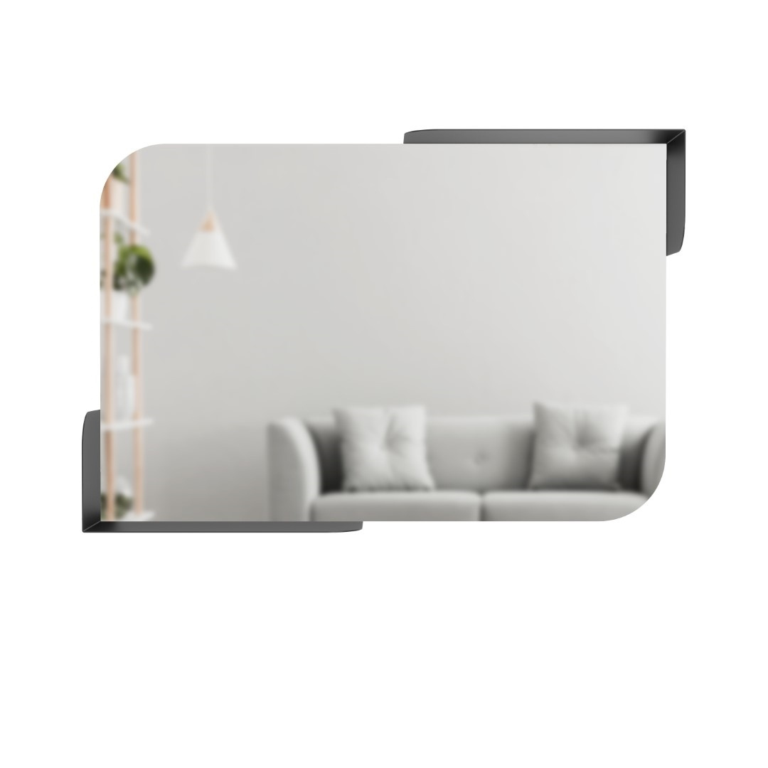 - UMBRA lustro wnękowe z półkami ALCOVE czarne. Dzięki odsłoniętym krawędziom i niepowtarzalnym półkom lustro nabiera nowoczesnego wyglądu i daje nam większą funkcjonalność. Dwie metalowe półki w kolorze czarnym, znajdują się po przeciwległych stronach lust