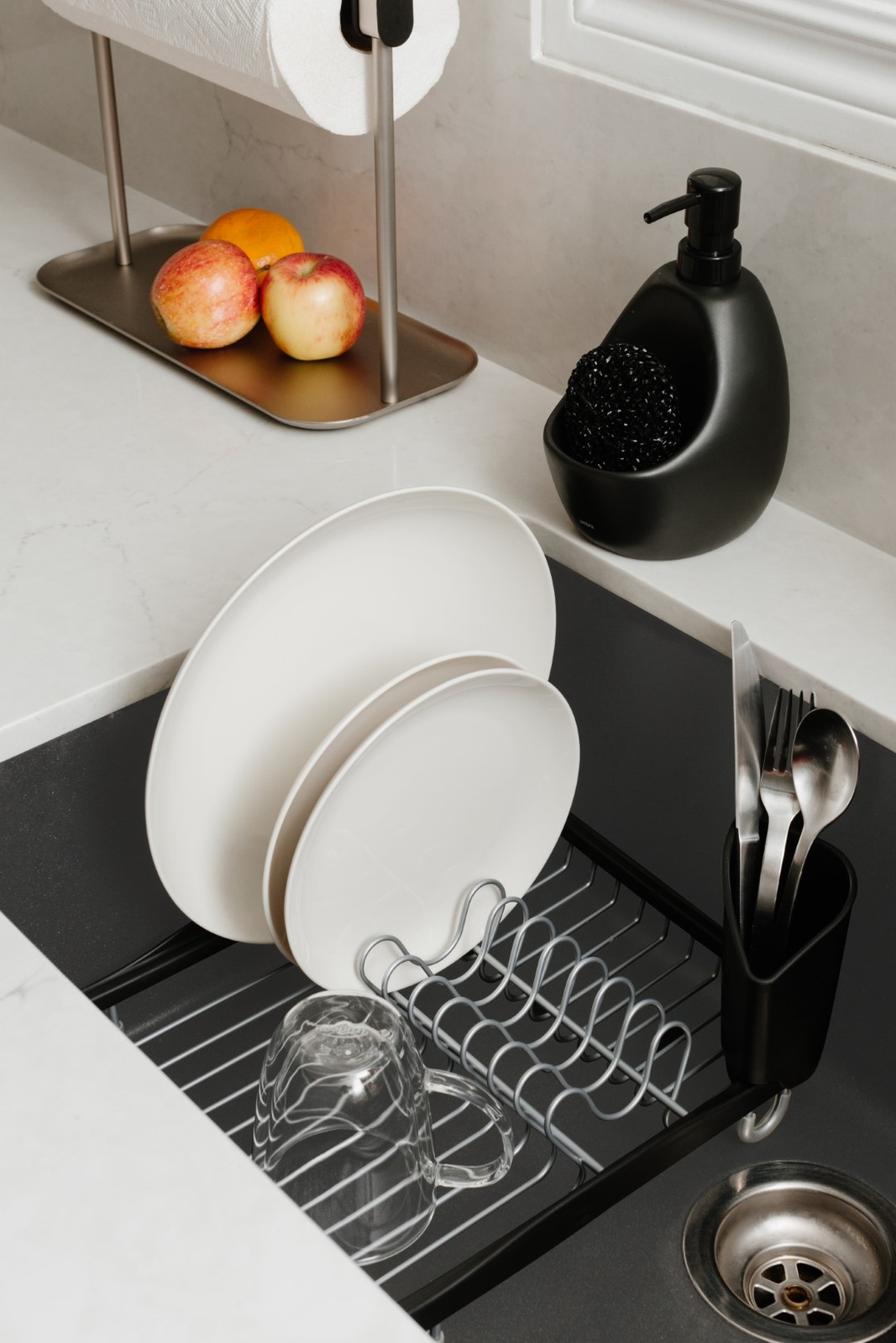 Kompaktowy, a przy tym niezwykle pojemny. Ociekacz do naczyń Sinkin to świetne rozwiązanie w szczególności do niewielkich kuchni. Na ociekaczu Sinkin zmieszczą się różnej wielkości talerze, szklanki bądź mniejsze garnki. Został wyposażony w ruchomy pojemnik na sztućce, który można umieścić w każdym z jego czterech rogów. Gumowe nakładki na nóżki chronią powierzchnię zlewu lub blatu przed porysowaniem. Ociekacz Sinkin można ustawić wewnątrz lub obok kuchennego zlewu. Istnieje też możliwość jego wykorzystania w kuchennej szafce - jako stojaka na naczynia. Został wykonany z metalu oraz tworzywa sztucznego. Powstał w pracowni projektantki Helen T. Miller - dla mającej siedzibę w Toronto marki Umbra