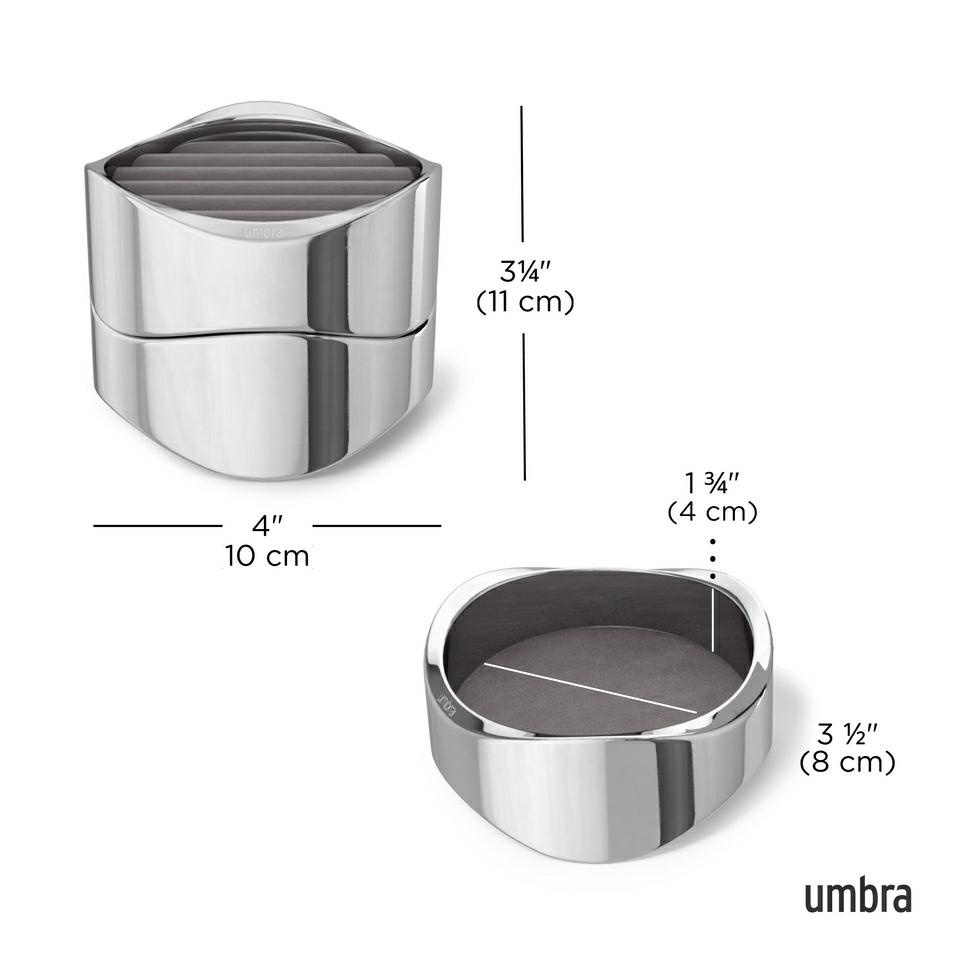 - UMBRA organizer na biżuterię WAVY chrom. Stylowe i praktyczne rozwiązanie dla osób ceniących elegancję i porządek. Błyszczące chromowane wykończenie nadaje nowoczesny i luksusowy wygląd, który doskonale komponuje się z każdą toaletką. Wnętrze zostało wyśc