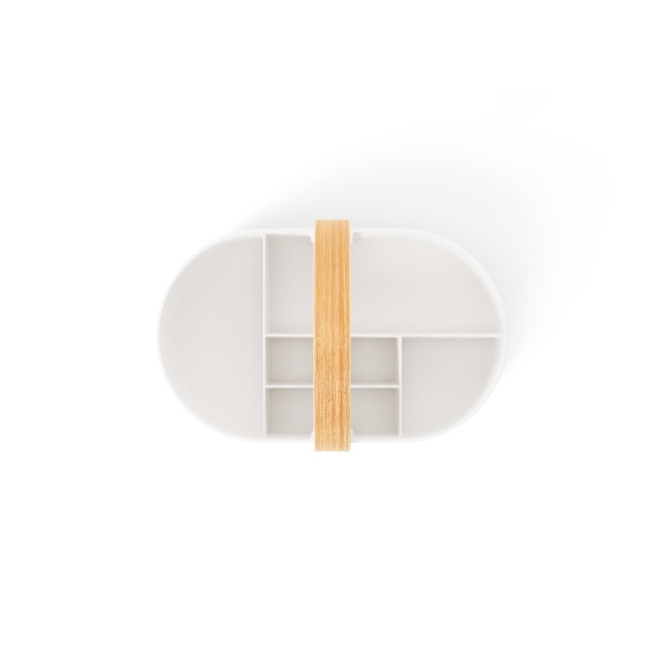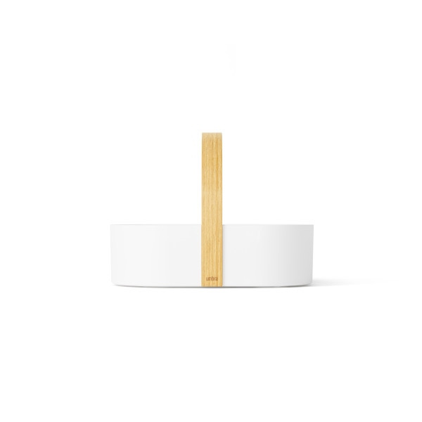 - UMBRA organizer na kosmetyki BELLWOOD biały Stylowy i funkcjonalny organizer, który pomoże Ci uporządkować codzienne drobiazgi – od kosmetyków, przez artykuły papiernicze, aż po akcesoria. Dzięki wbudowanemu, drewnianemu uchwytowi z łatwością przeniesiesz
