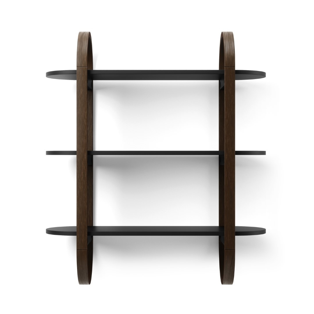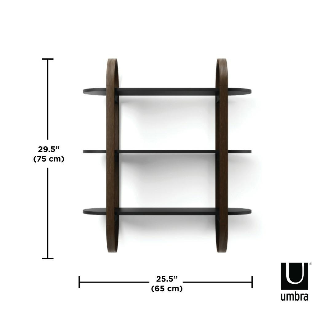 • UMBRA półka ścienna BELLWOOD czarny orzech. Jest to innowacyjna i wielofunkcyjna półka mocowana na ścianie o trzech poziomach i owalnym kształcie. Świetnie dopasuje się do każdego pokoju a w szczególności salonu. Sprawdzi się idealnie do przechowywania ks