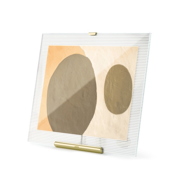 UMBRA ramka na zdjęcia FLUTE 8x10 złota Elegancki i nowoczesny akcent do każdego wnętrza. Unikalna sztalugowa konstrukcja nie tylko przyciąga wzrok, ale także pozwala efektownie wyeksponować zdjęcia w formatach 4x6, 5x7 lub 8x10. Szklany podkład z subtelną fakturą dodaje całości lekkości i wyrafinowanego stylu. Dzięki możliwości ustawienia w pionie lub poziomie z łatwością dopasujesz ramkę Flute do swoich ulubionych kadrów. Każdy metalowy element został ręcznie polerowany, co czyni każdy produkt wyjątkowym. Wymiary: wys. 31 cm / szer. 26 cm / gł. 4 cm Waga netto: 1,5 kg.