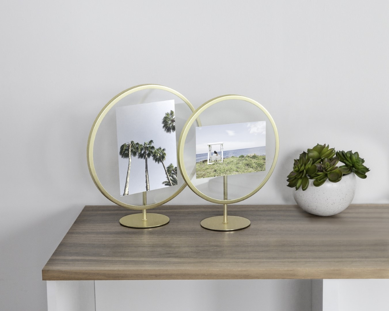 - UMBRA ramka na zdjęcia INFINITY okrągła w kolorze złota. Oryginalny design i eleganckie wykończenie uzupełniają wykonanie tej wyjątkowej ramki. Dzięki ruchomej ramce możemy w niej umieszczać zdjęcia o wymiarach 10 cm × 15 cm oraz 13 cm × 18 cm. Mogą być u