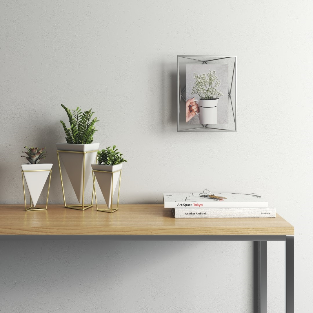 - Nadaj nowy wymiar swoim zdjęciom dzięki tej pryzmatycznej ramie z drutu o rozmiarach 13 cm x 18 cm, w której zdjęcie unosi się pomiędzy dwiema taflami szkła. Ramkę możemy zawiesić na ścianie jak i tez postawić na biurku czy regale.