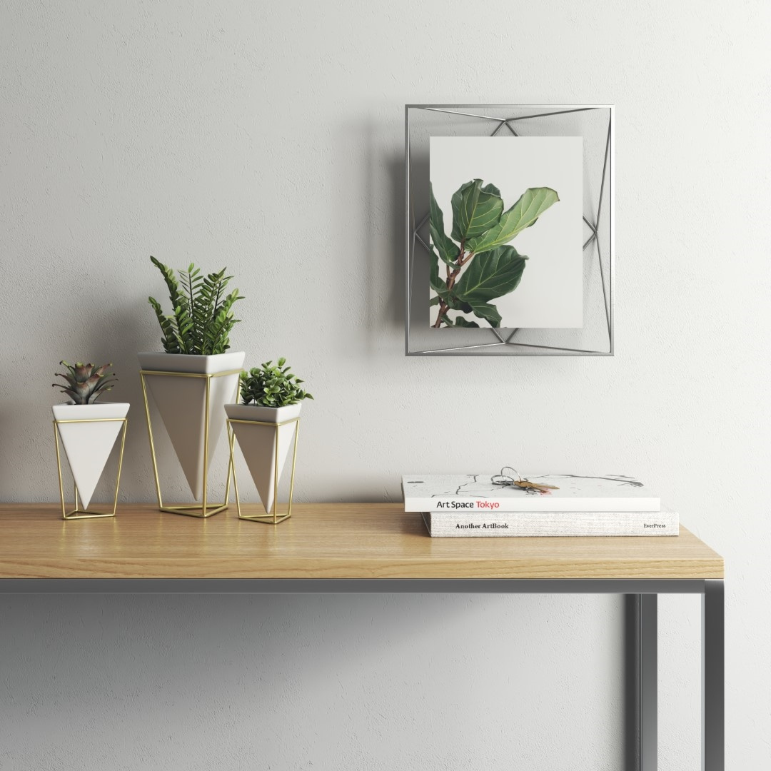 - Nadaj nowy wymiar swoim zdjęciom dzięki tej pryzmatycznej ramie z drutu o rozmiarach 20 cm x 25 cm, w której zdjęcie unosi się pomiędzy dwiema taflami szkła. Ramkę możemy zawiesić na ścianie jak i tez postawić na biurku czy regale.