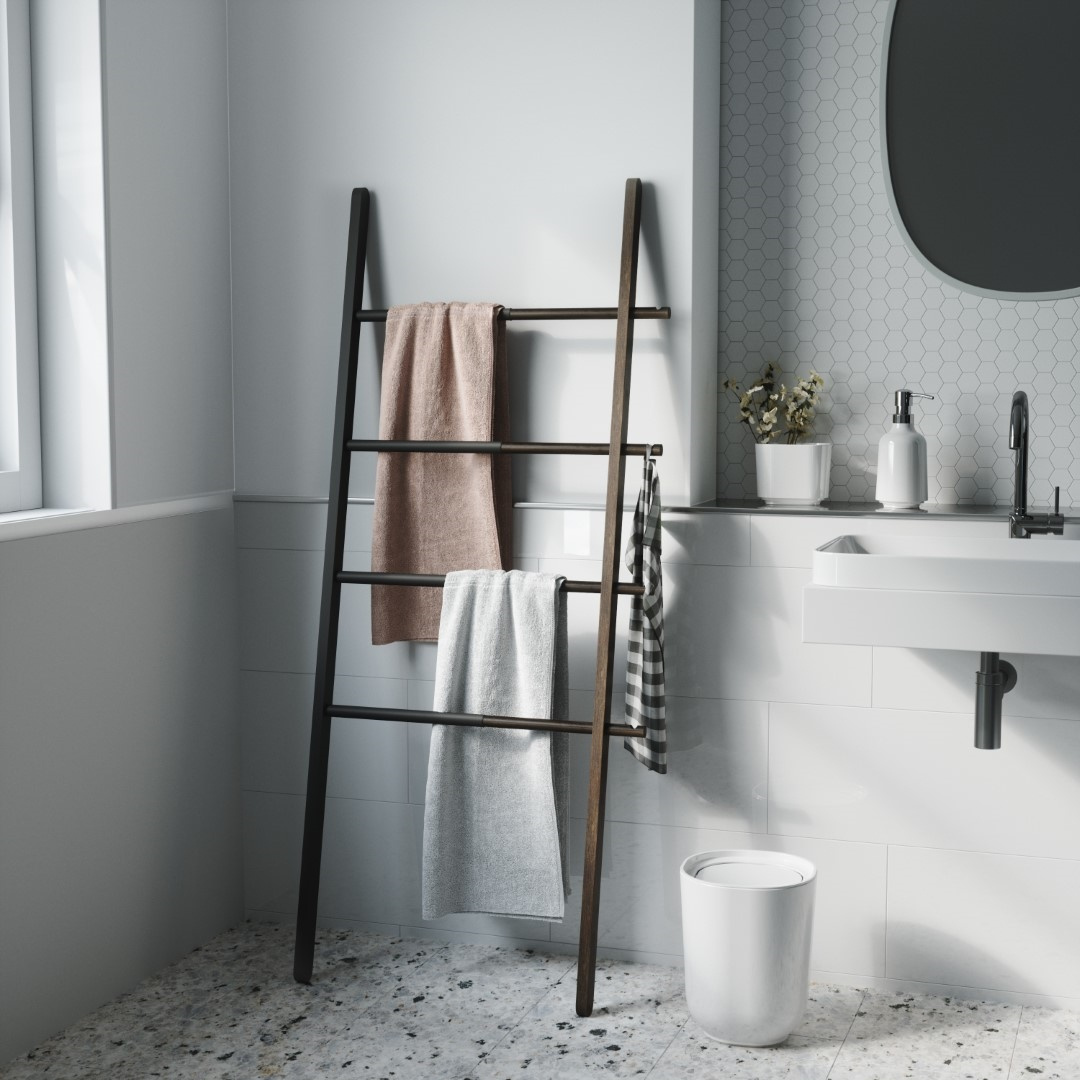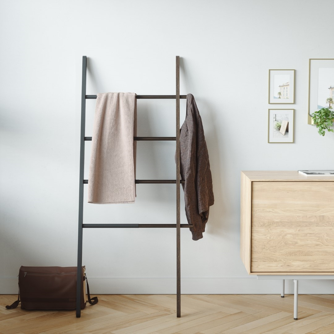 - UMBRA wieszak / drabina HUB koloru czarnego. Jest to niezwykle stylowy i nowoczesny wieszak na ubrania, który może być używany również jako wieszak na ręczniki. Jego uniwersalność dopasuje się do każdego pomieszczenia, możliwość regulacji sprawi, że zmieś