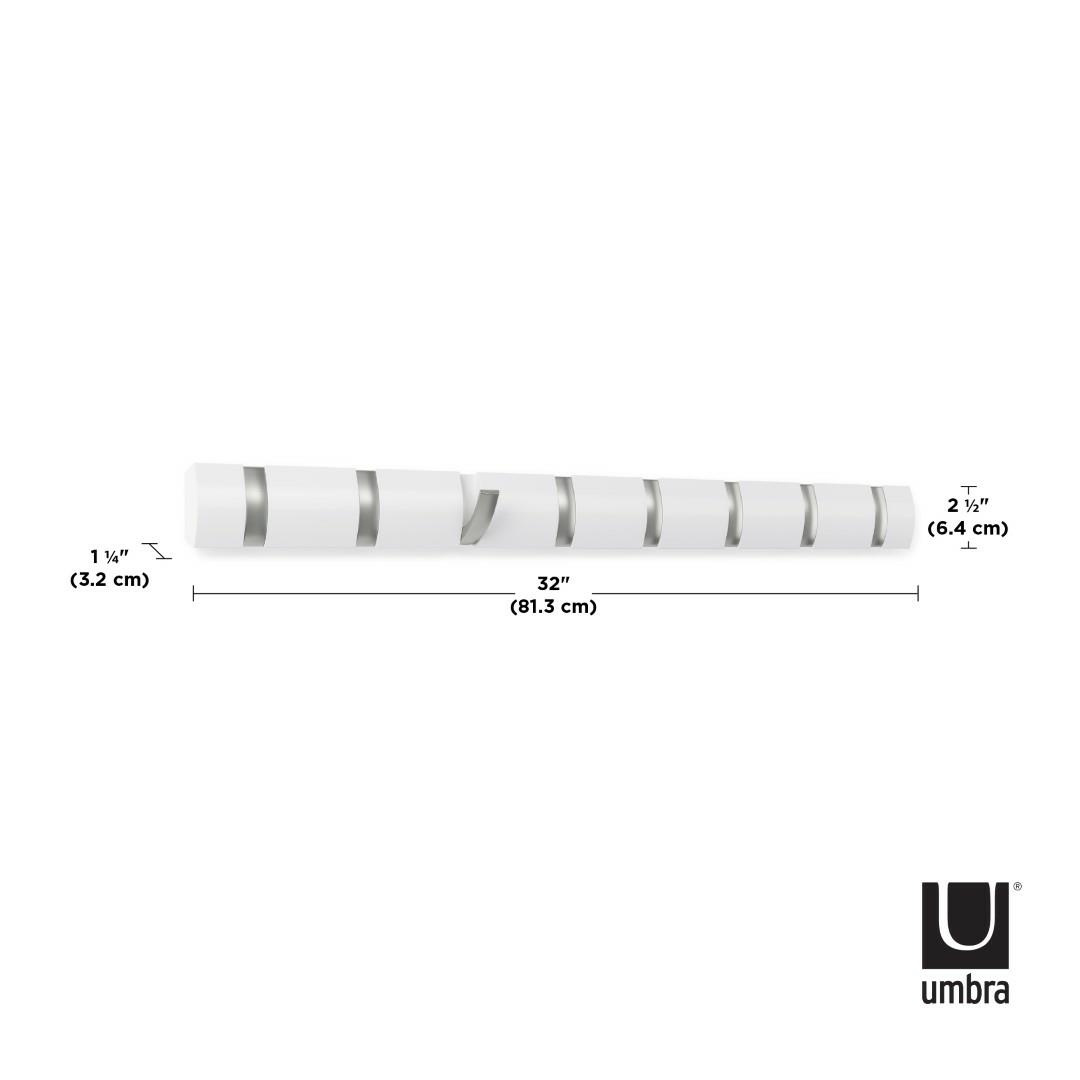- UMBRA wieszak na ubrania Flip 8 koloru białego. To nowoczesny, funkcjonalny, montowany na ścianie wieszak na ubrania z dużą ilością miejsca. Posiada osiem haczyków, które chowają się, gdy nie są używane, tym samym zapewniając elegancki wygląd. Jest to ide