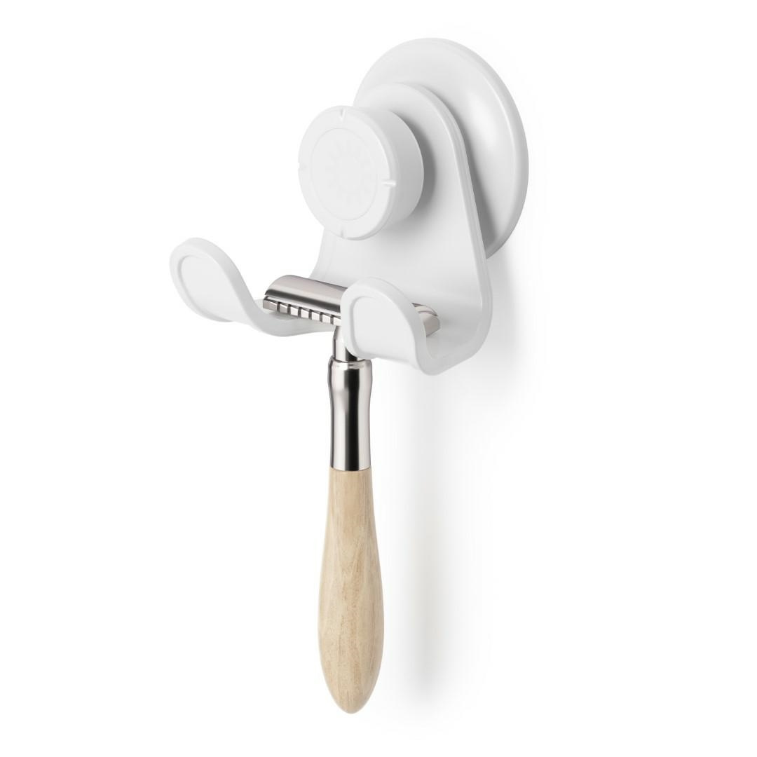 - UMBRA wieszak pod prysznic FLEX koloru białego. Jest to wieszak, który montuje się za pomocą przyssawki do ścian lub szkła. Dzięki temu unikniemy, wiercenia i uszkodzeń w ścianach. Wykonany jest z tworzywa sztucznego, przez co jest łatwe w czyszczeniu i o