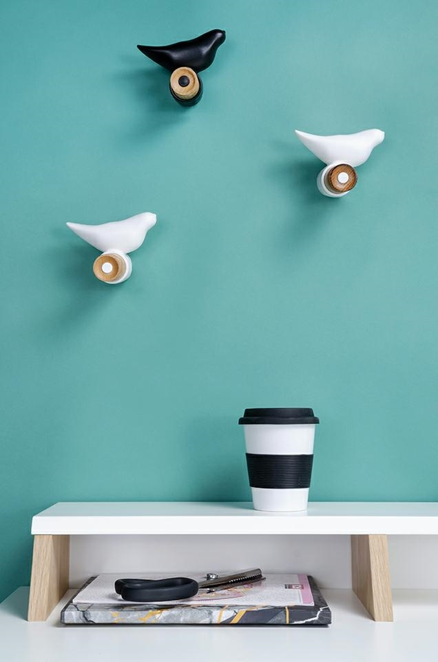 • Wieszak Bird, będzie miłym akcentem dekoracyjnym w każdym domu. Sprawdzi się w przedpokoju, łazience i pokoju dziecięcym. Bird wykonany jest z polipropylenu w kolorze czarnym matowym oraz drewna bukowego. Wymiary: wys. 10 cm / szer. 11 cm / gł. 9 cm Wymia