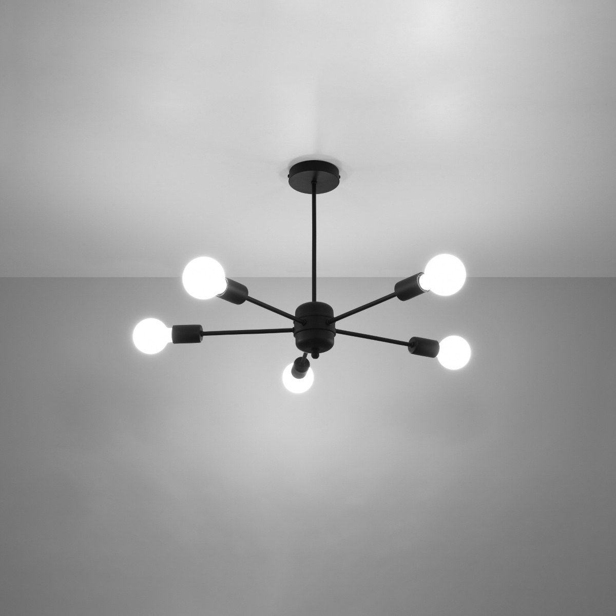 - Źródło światła: E27, 5x max 15W LED, ~230V, 50Hz, IP20, klasa ochronności IŹródło światła nie jest w komplecie.Wymiary: 66/66/46 cmMateriał: stal Kolor: czarny